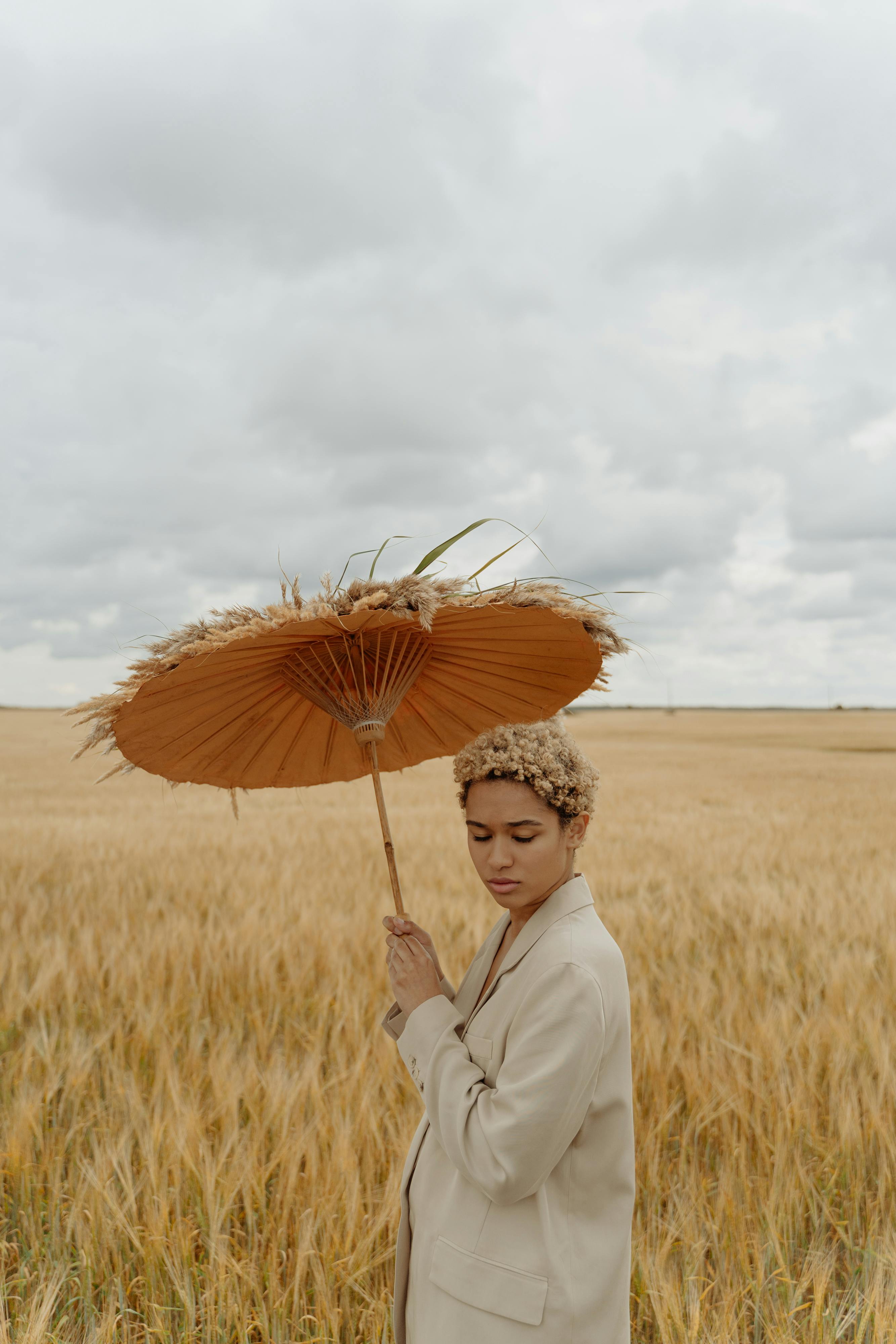 Sunlit wanderers in a sea of wheat. Where parasols, soft fabrics, and open skies evoke a quiet freedom. Each frame dances between warmth and whimsy, grounded in texture and motion.