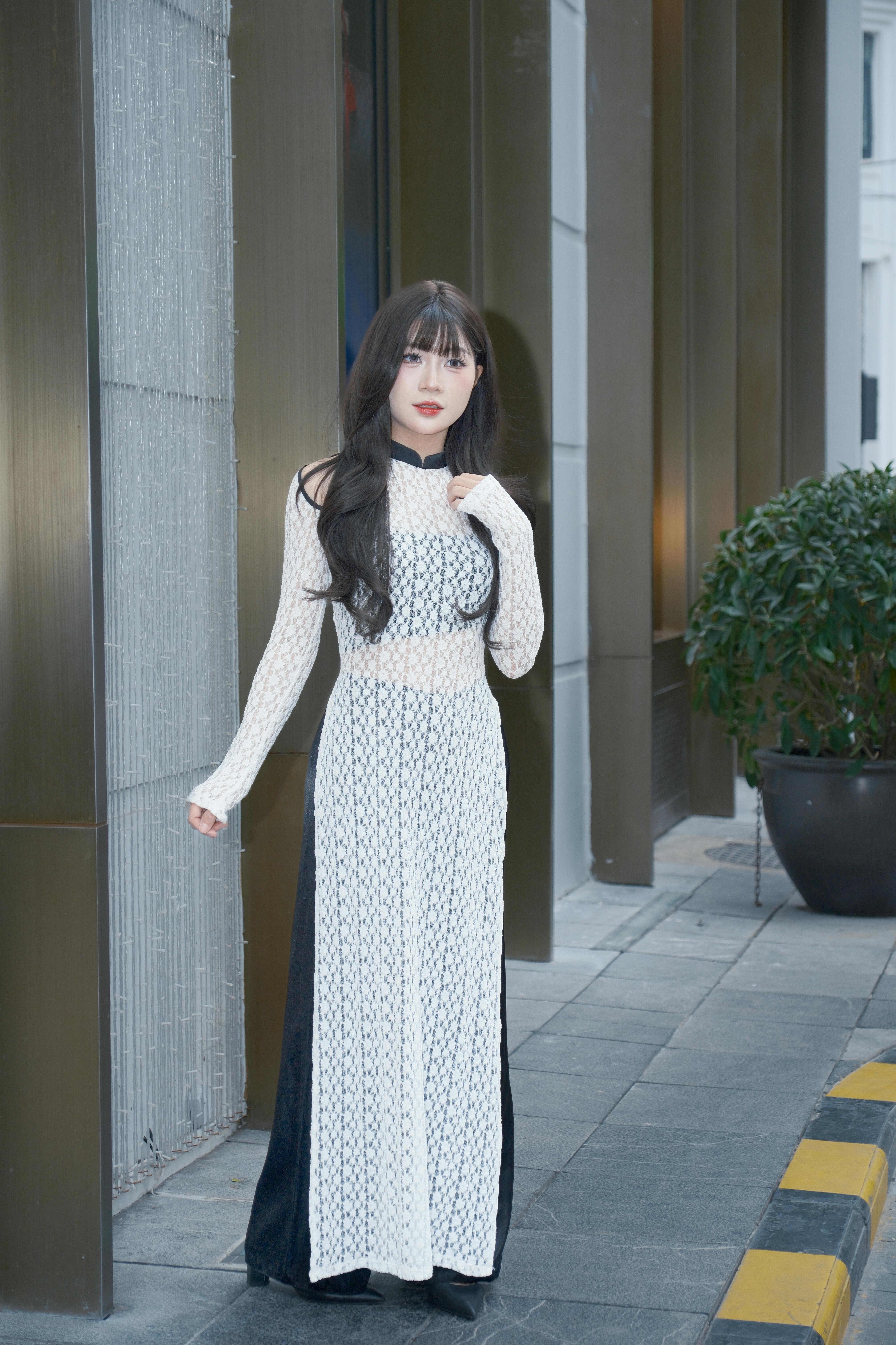 A quiet ritual of movement and bloom, where monochrome layers meet the soft defiance of a single white flower. Each frame holds a moment of introspection, poised between structure and softness.