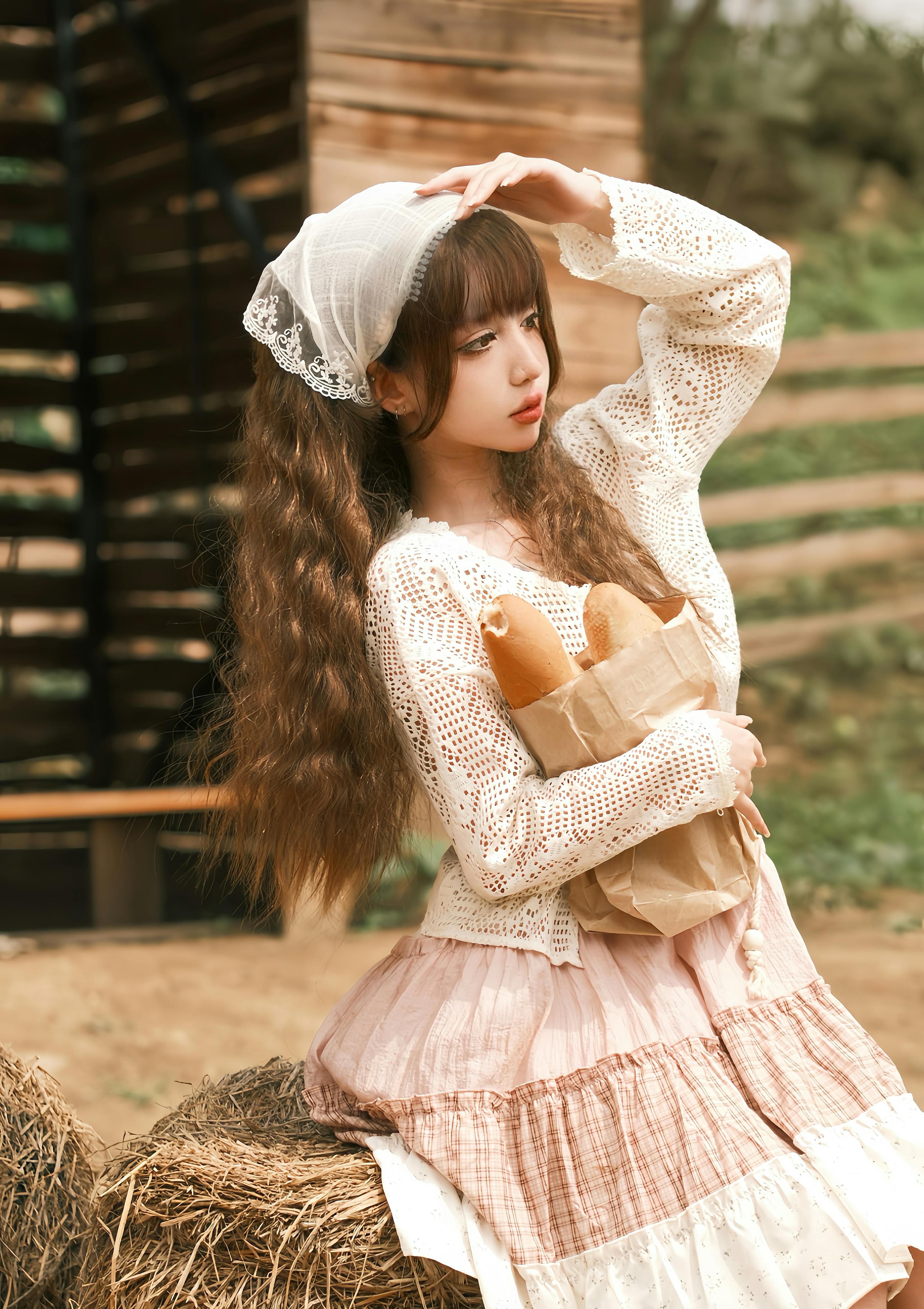 A tender ode to countryside quiet. Lace, bonnets, and sheep in soft communion with the land. Each frame evokes a timeless stillness, where fashion folds into folklore.