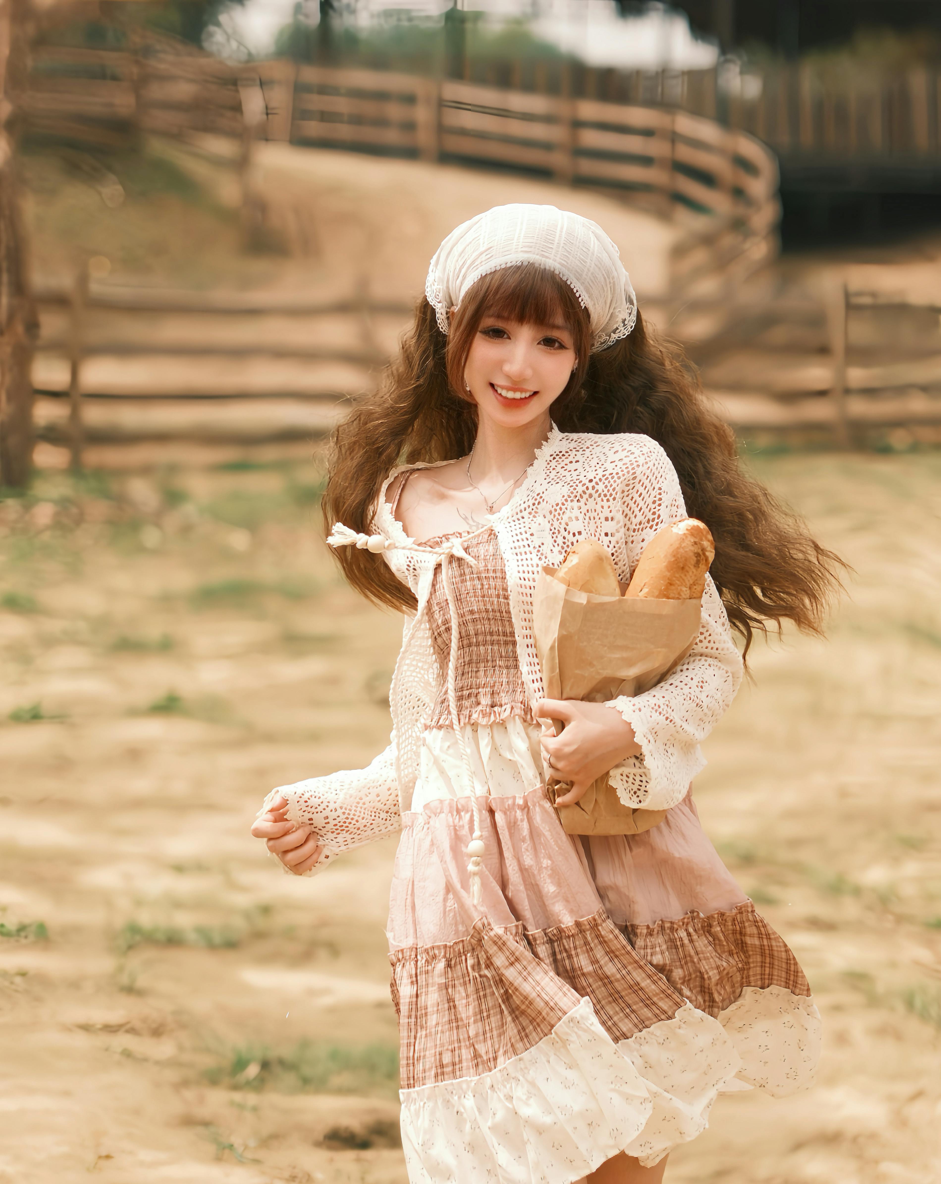 Vintage Outfit, White Bonnet, Farm Aesthetic